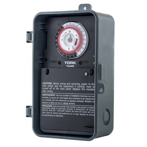 Tork TU40, 4 Hour Time Switch 40A Auto Voltage 120-277V DPDT Indoor/Outdoor Plastic Enclosure