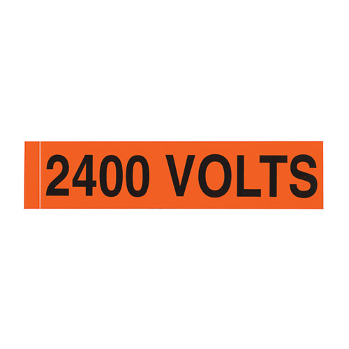 Voltage Marker, Legend"2400 Volts", 9" Length x 2-1/4" Height, Pressure Sensitive Vinyl, Black on Orange