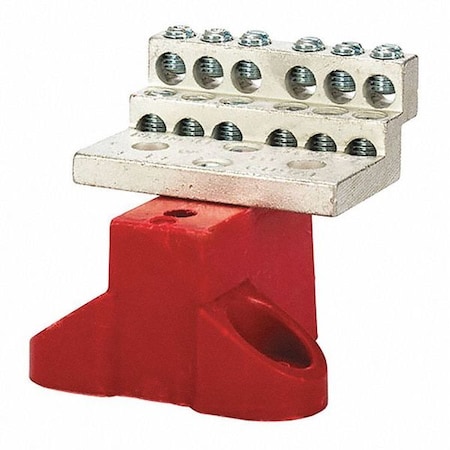 Neutral Bar and Neutral Assembly, 225A Neutral Bar with Mounting Base, 4-14 AWG Wire Range, 600VAC Voltage, 2.250" Width, 2.250" Height, 2.068" Length