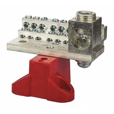 Neutral Bar and Neutral Assembly, 225A Neutral Bar with Mounting Base, (18) 4-14 AWG Wire Range, 600VAC Voltage, 350 MCM - 6 Lug Size, 2.250" Width, 2.750" Height, 3.257" Length