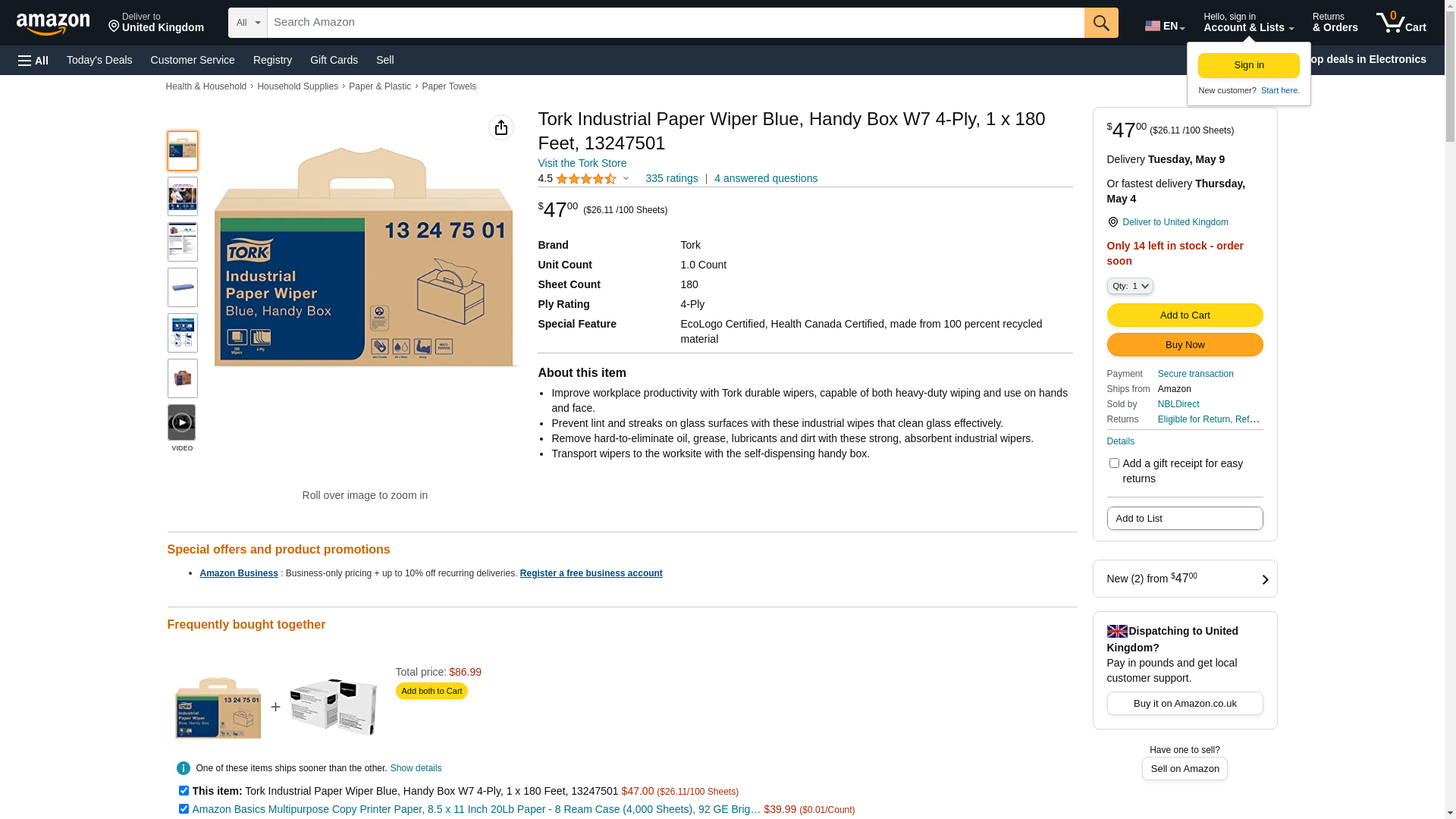 - Ply: 4 - Color: Blue - Unfolded Width: 12.8 in