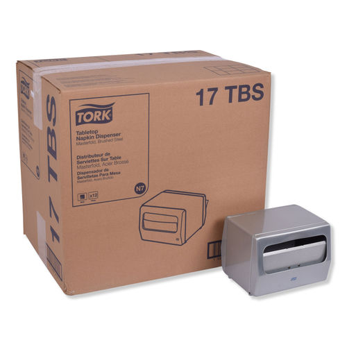 Tork 17TBS Masterfold Tabletop Napkin Dispenser, 5.625" Height x 7.5" Width x 6.25" Diameter, Brushed Steel (Case of 12 Dispensers) For use with Tork D786E