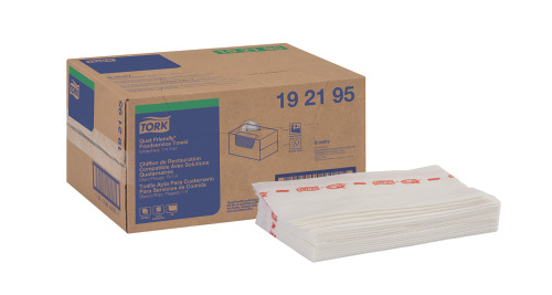 Tork Quat Friendly Foodservice Cleaning Towel White Self Dispensing, 1/4 Folded, 1 x 150 Cloths, 192195