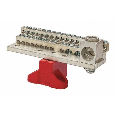 Neutral Bar and Neutral Assembly, 225A Neutral Bar with Mounting Base, (26) 4-14 AWG 1/0-14 AWG Wire Range, 600VAC Voltage, 350 MCM - 6 Lug Size, 2.437" Width, 2.900" Height, 5.369" Length
