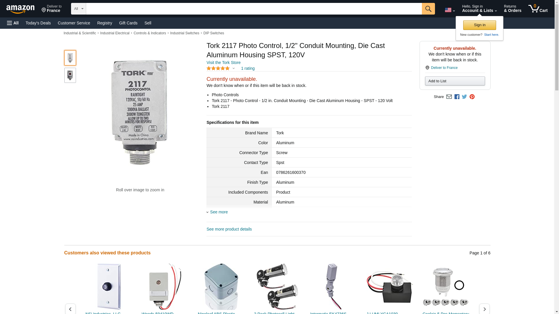 Tork 2117 Photo Control, 1/2" Conduit Mounting, Die Cast Aluminum Housing SPST, 120V