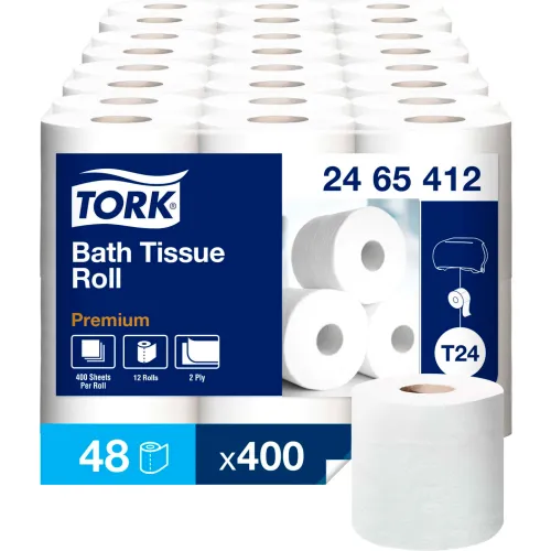 - At 400 sheets per roll, Tork Premium toilet tissue paper is long-lasting and convenient