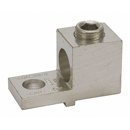 Dual Rated Mechanical Connector, Lug with Turn Prevent, 300 MCM-6 Wire Range, 0.437" Mounting Hole, 0.492" Turn Prevent To Mouting Hole Center, 0.984" Width, 1.125" Height, 2" Length