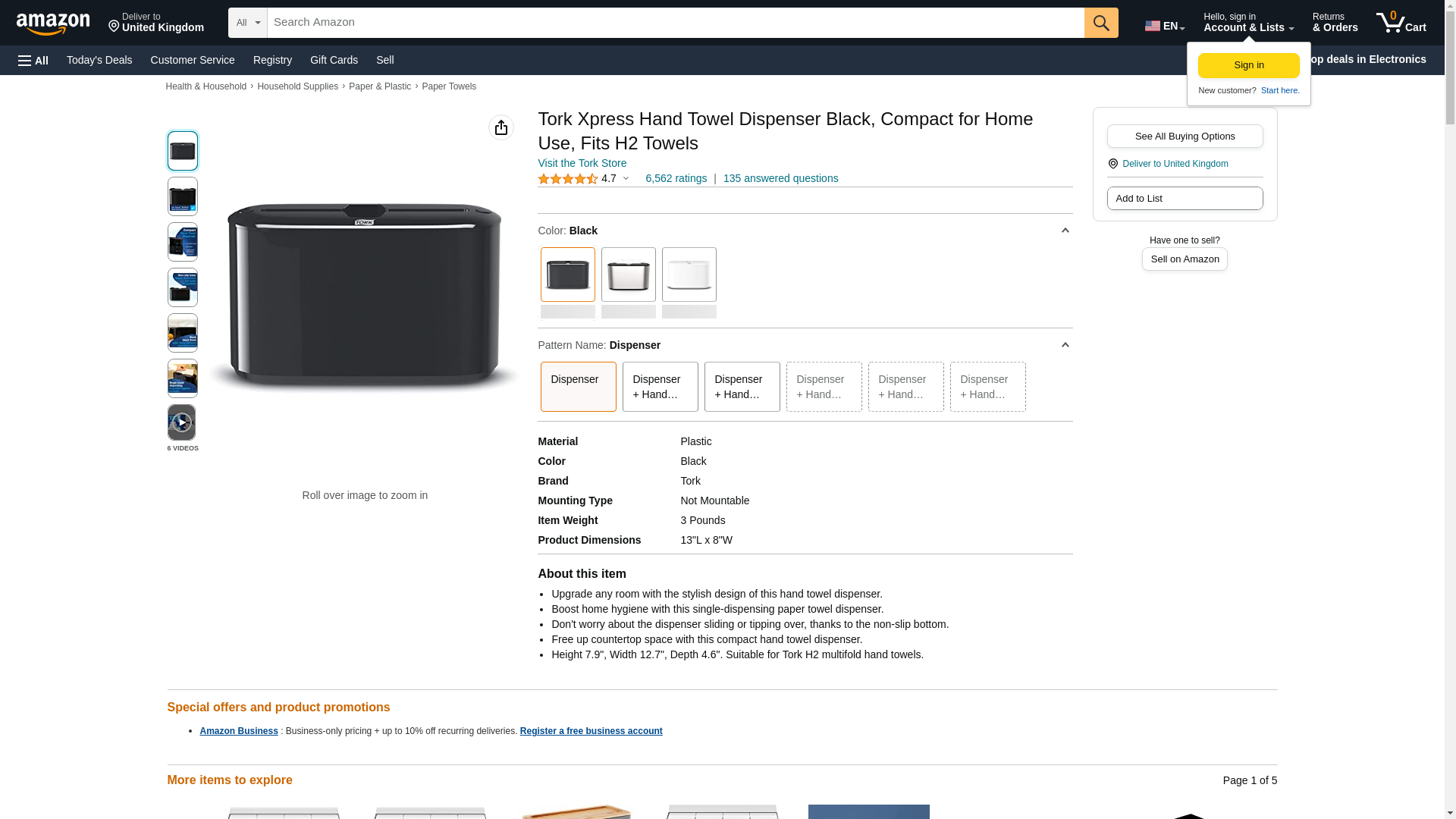 Tork Xpress Paper Towel Dispenser, Black, Compact for Home Use, Fits H2 Towels