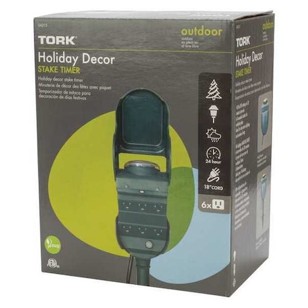 TORK SA215 Outdoor Mechanical Plug-In Holiday Decor Stake Timer, 6 Grounded Outlets