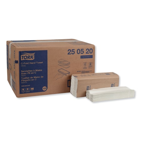 Tork 250520 Advanced C-Fold Paper Hand Towel, 1-Ply, 10.125" Width x 12.75" Length, White (Case of 16 Packs, 150 per Pack, 2,400 Towels per Case)