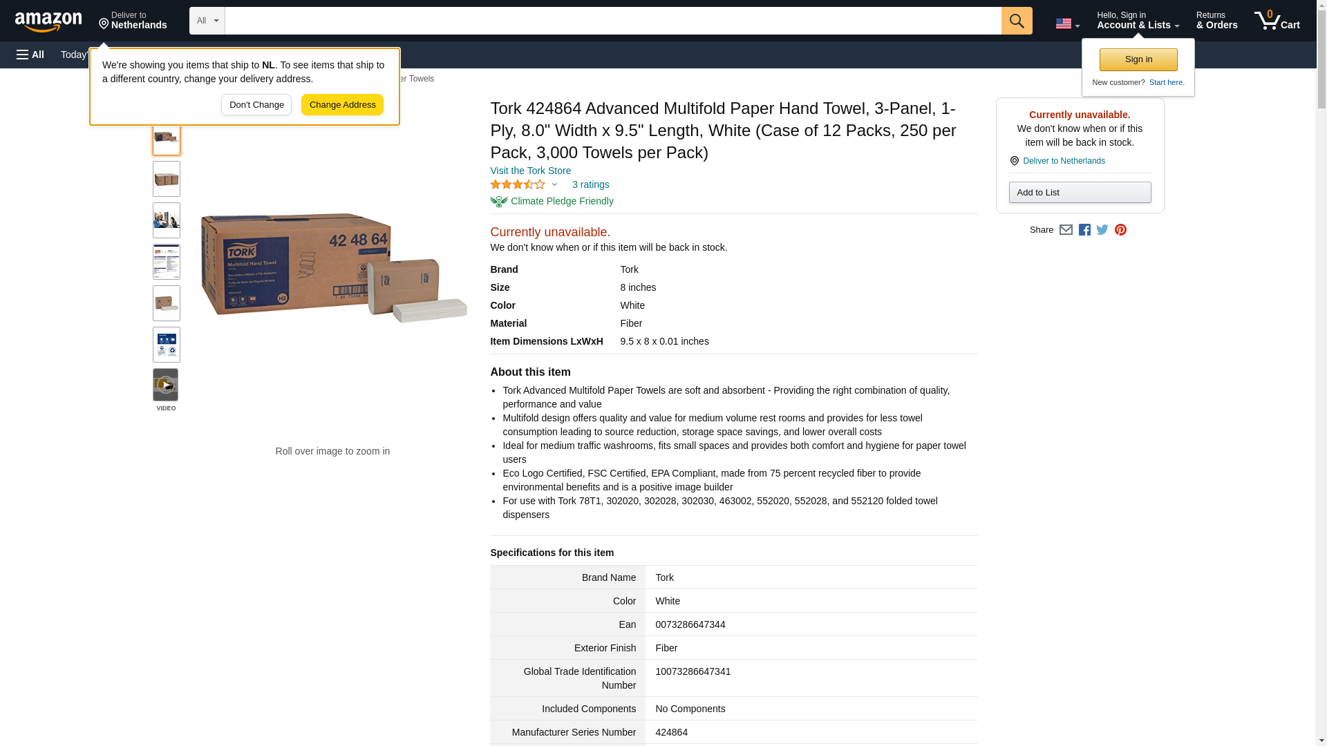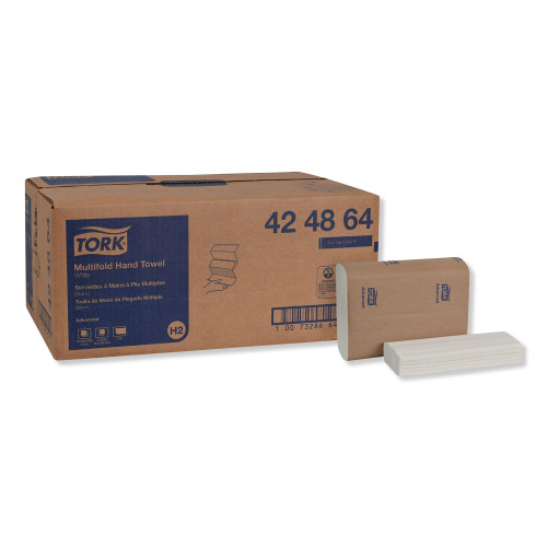 Tork 424864 Advanced Multifold Paper Hand Towel, 3-Panel, 1-Ply, 8.0" Width x 9.5" Length, White (Case of 12 Packs, 250 per Pack, 3,000 Towels per Pack)