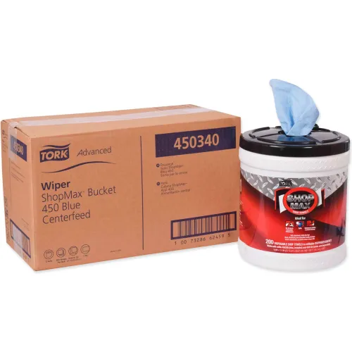 - Gain portability and convenience with the quick, easy on-off access of Tork Advanced ShopMax Wipe packaging.