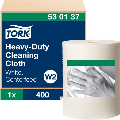 Tork Heavy Duty Cleaning Cloth White W2, Centerfeed, 1 x 400 Cloths, 530137