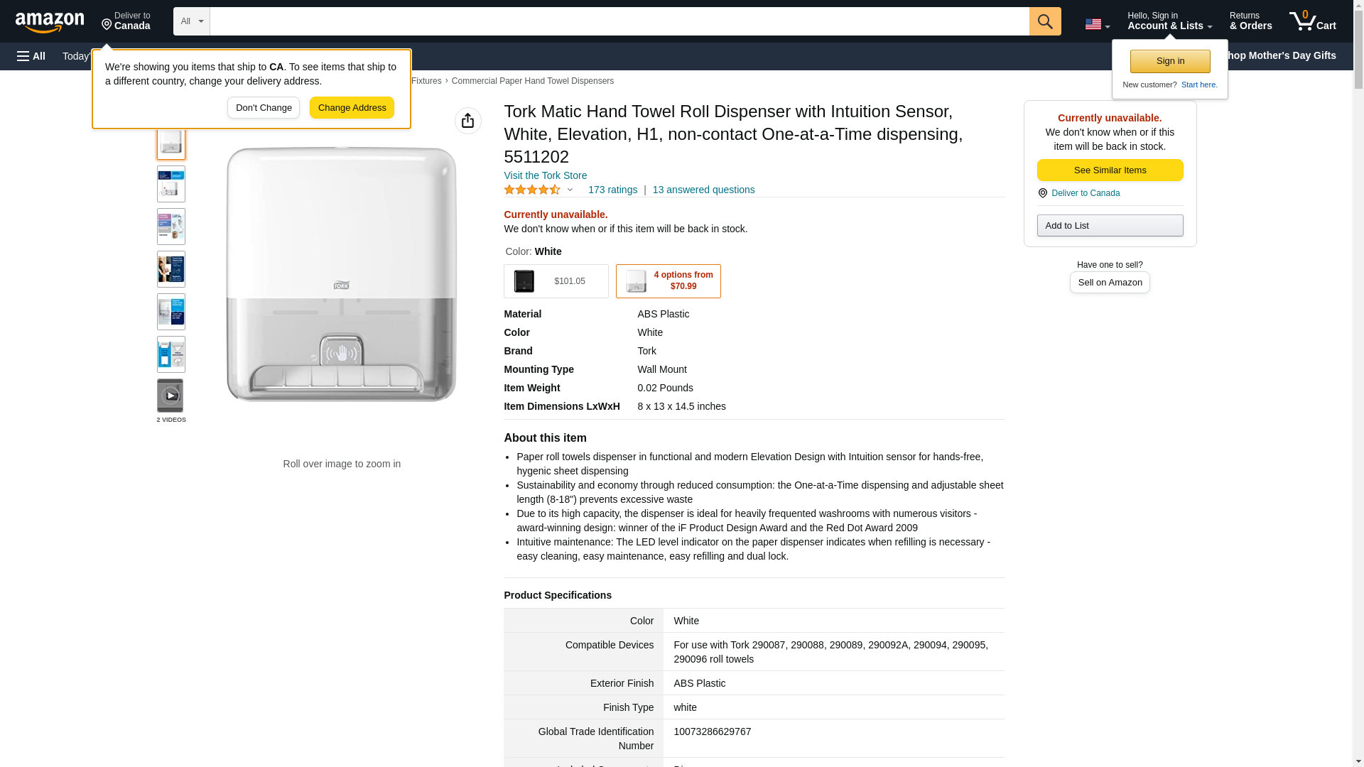Tork Matic Paper Towel Dispenser, Intuition Sensor, White, Elevation, H1, non-contact One-at-a-Time dispensing, 5511202