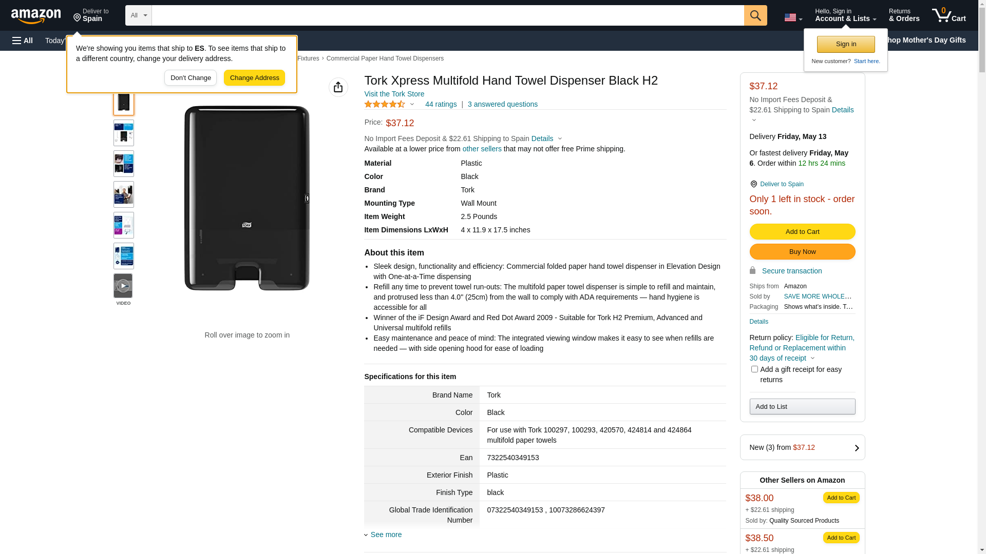 - Design: Elevation. W 11.9" H 17.5" D 4.0" Material: Plastic. Color: Black. Suitable for H2 refills from Tork.