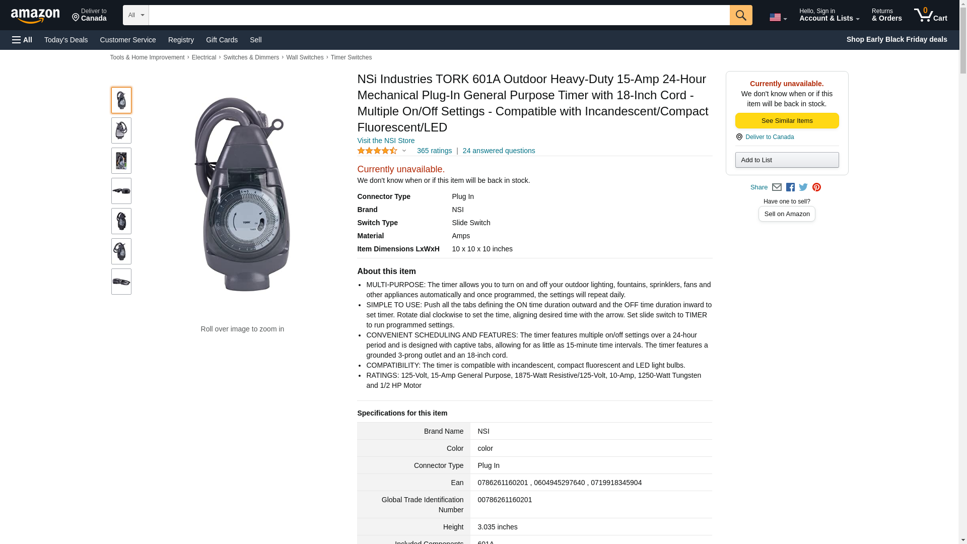 NSi Industries TORK 601A Outdoor Heavy-Duty 15-Amp 24-Hour Mechanical Plug-In General Purpose Timer with 18-Inch Cord - Multiple On/Off Settings - Compatible with Incandescent/Compact Fluorescent/LED