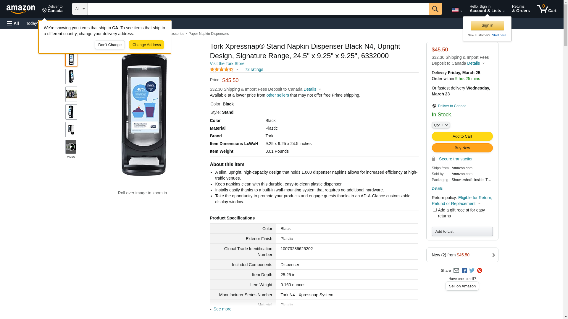 Tork SCA Tork 6332000 Xpressnap Signature Stand Napkin Dispenser, Black Licorice