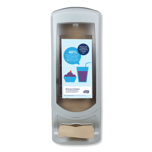 - A slim, upright, high-capacity design that holds 1,000 1-ply dispenser napkins allows for increased efficiency at high-traffic venues.