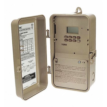 Tork DG200A 365/7 Day 2 Channel SPDT Digital Time SwitchAPPLICATIONS:Indoor/Outdoor LightingHVAC EquipmentSchool Warning and OtherTraffic LightsWater Heaters in Offices, Churches and FactoriesFEATURES:TIMING ACCURACY: Line FrequencyINPUT VOLTAGE: 120-277 50/60HzDRY CONTACTS: SPDTTERMINAL RANGE: #14-#18AWGOPERATING TEMPERATURE: -31 degrees to +131 degrees F (-35 degrees to 55 degrees C)POWER CONSUMPTION: 6VA MaxSCHEDULING: 56 ON & OFF set points provide individual programs for each day of the week. Minimum setting is 1 minute.BLOCK HOLIDAY: 9 holiday blocks can be set for individual days or for duration of any number of days.DAYLIGHT SAVINGS: Automatic adjustment (can be omitted).LEAP YEAR: Automatic compensation.MANUAL OVERRIDE: Until the next regularly scheduled ON or OFF, automatic operation then resumes. CLOCK FORMAT: AM/PM or Military time.POWER OUTAGE BACKUP: Permanent schedule retention. Super-capacitor provides 7 days of real time backup.ENCLOSURE: Noryl Indoor/Outdoor NEMA 3R with lockable hasp.BRAND EQUIVALENT: Paragon EL7200PC/208-240MANUFACTURER: TorkPART NUMBER: DG200AUPC: 786261822093CONTACT RATINGS:GENERAL PURPOSE: 24-277VAC. Contact Rating NO: 20A NC: 10ABALLAST: 120VAC. Contact Rating NO: 20A NC: 10A 277VAC. Contact Rating NO: 20A NC: 10ATUNGSTEN: 120VAC. Contact Rating NO: 15APILOT DUTY: 120VAC. Contact Rating NO: 720VA NC: 290VA 240VAC. Contact Rating NO: 720VA NC: 360VAMOTOR LOAD: 120VAC. Contact Rating NO: 1HP NC: 1/4HP 240VAC. Contact Rating NO: 2HP NC: 1/2HPRESISTIVE: 28VDC. Contact Rating NO: 20A NC: 10AWe have timers to fit your every need, with the best selection and prices.