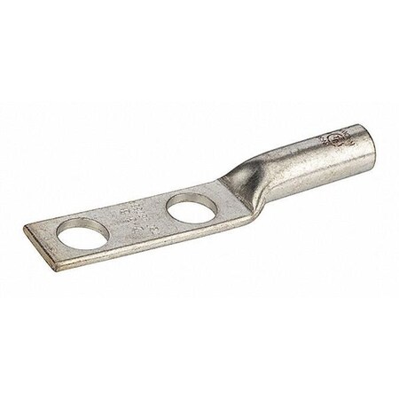 Copper Compression Connector, Long Barrel Copper Lug, LN Series, Two Hole Nema, 3/8" Stud, 1-3/8" Strip Length, 0.42" OD, 0.60" Width, 3.07" Length, 0.10" Thick, Brown