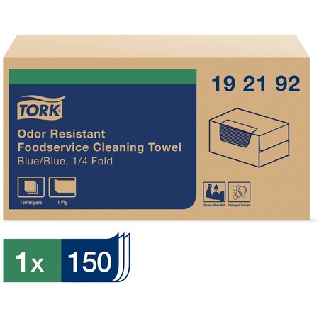 Tork 192192 Odor Resistant Foodservice Cleaning Towel, 1/4 Fold, 13" Width x 24" Length, Blue/Blue Stripe (Case of 1 Box, 150 Cloths per Box)