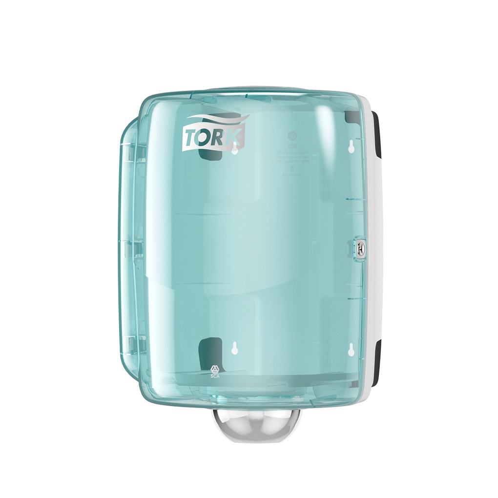 Tork Maxi Centerfeed Roll Dispenser Aqua/White W2, High Capacity, Performance Range, 653020