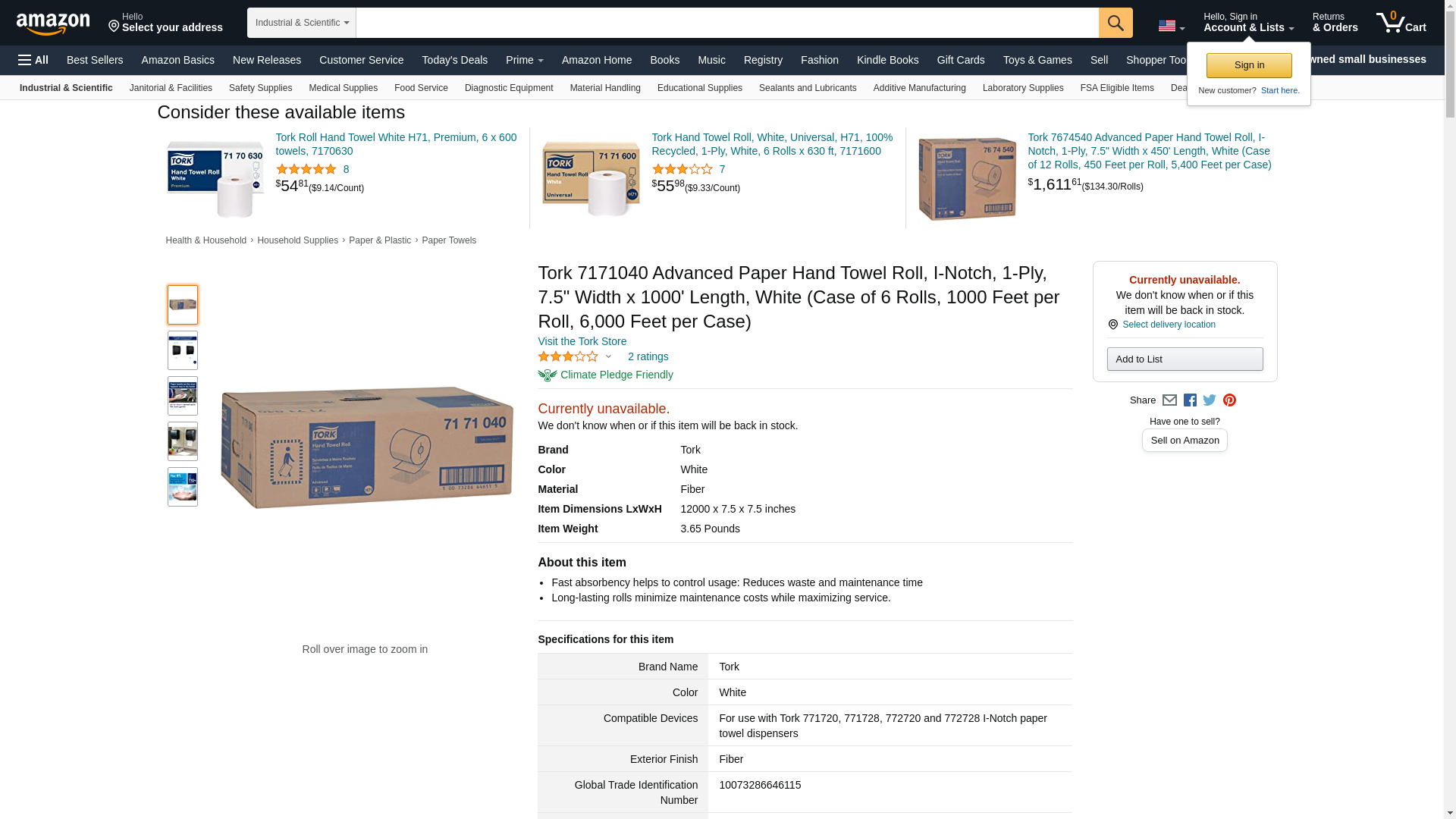 Tork 7171040 Advanced Paper Hand Towel Roll, I-Notch, 1-Ply, 7.5" Width x 1000' Length, White (Case of 6 Rolls, 1000 Feet per Roll, 6,000 Feet per Case)