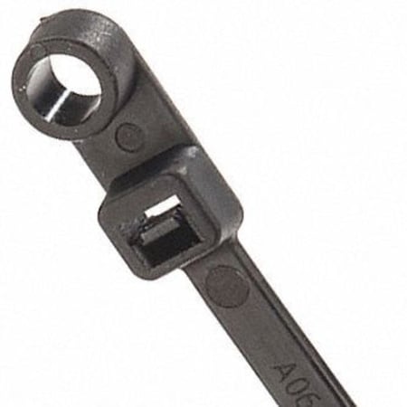 Weather Resistant Mountable Cable Tie, 50lbs Tensile Strength, 2" Bundle Diameter, 0.181" Mounting Hole Diameter, 0.165" Width, 8" Length, Black- 100 count