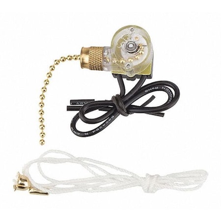 Pull Chain Switch, On Off Circut Function, SPST, Brass Actuator, 6/3 amps at 125/250 VAC