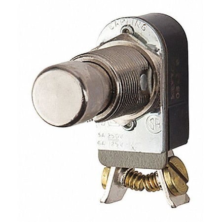 Push Button Switch, Push on, Push off Circut Function, SPST, Brass/Nickel Actuator, 6/3 amps at 125/250 VAC/DC