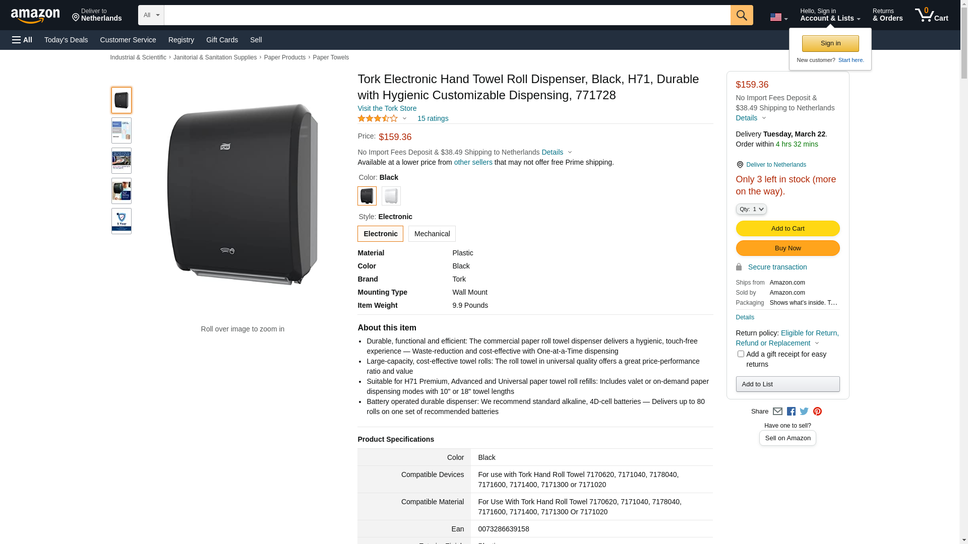 Tork Electronic Hand Towel Roll Dispenser, Black, H71, Durable with Hygienic Customizable Dispensing, 771728