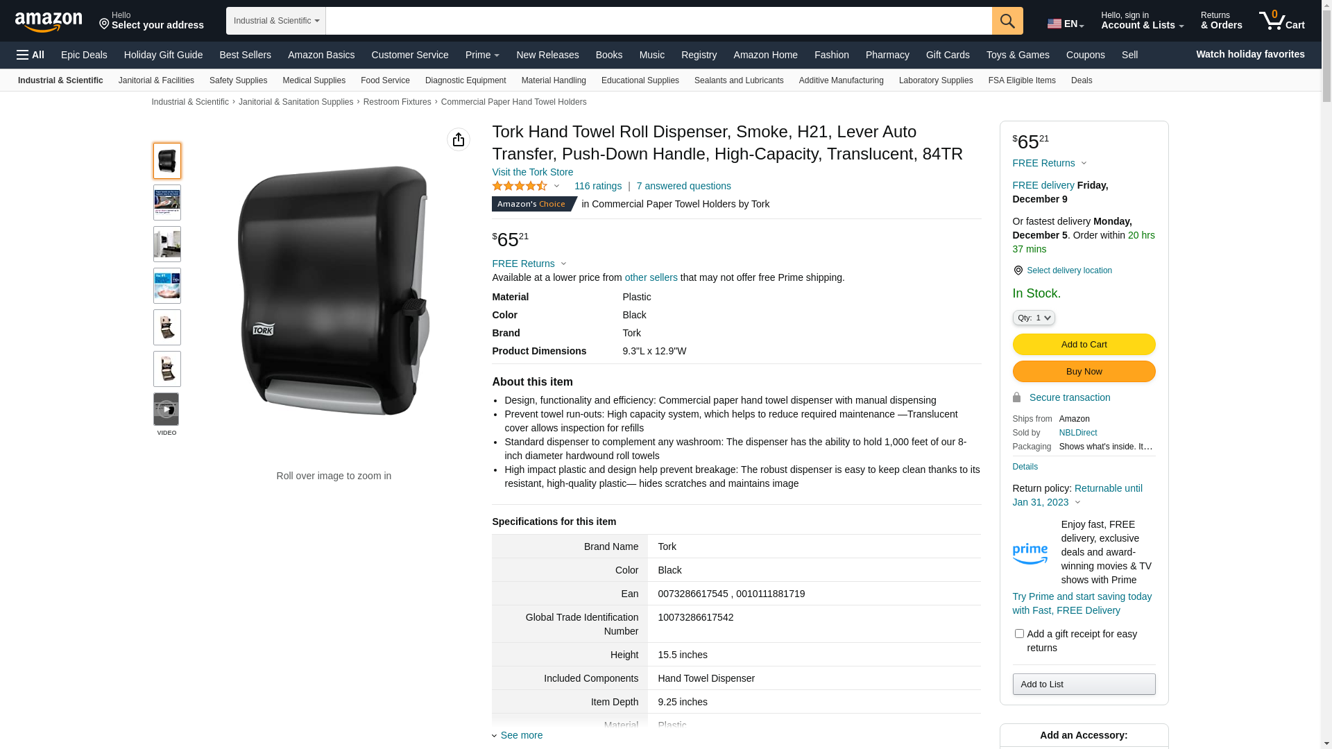 Tork Hand Towel Roll DispenserAttractive dispenser presents a clean, modern appearance which complements all décor. Translucent cover allows for "at a glance" inspection for refills. Smooth cover hides scratches and maintains image. Cover with no recesses is easy to clean and maintain. Dispenser with stub roll auto-transfer feature for ease of use. High capacity for reduced costs and fewer service interruptions. Towels Dispensers Type: Roll Towel Dispenser; Material(s): Plastic; Capacity (text): 1 Roll; Color(s): Smoke.For Model Number(s):Tork RB206, RB350A, RB351, RB425, RB600, RB6002, RB800, RB8002, RB10002, RK1000, RK206E, RK350A,RK600E, RK800E, RB8004, RK8002 Essity, Tork Hand Towel Roll Dispenser, 12 15/16 x 9 1/4 x 15 1/2, Smoke Color(s): Smoke Total Recycled Content Percent: 0% Towels Dispensers Type: Roll Towel Dispenser Capacity (text): 1 Roll For Use With: RB206, RB350A, RB351, RB425, RB600, RB6002, RB800, RB8002, RB10002, RK1000, RK206E, RK350A,RK600E, RK800E, RB8004, RK8002 Pre-Consumer Recycled Content Percent: 0% Post-Consumer Recycled Content Percent: 0% Height: 15 1/2" Width: 12 15/16" Global Product Type: Towel Dispensers-Roll, Lever Material(s): Plastic Depth: 9 1/4" For Roll Size: Up to 1000 ft Quantity: 1 each