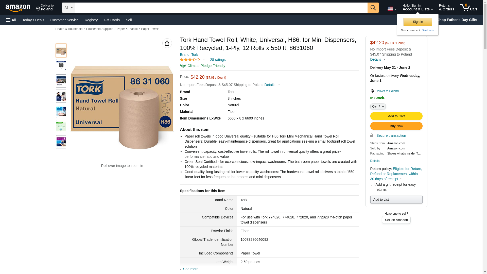 - 6 rolls, 1 ply. Universal quality. Roll size L 550.0'. W 8.0" Core inner diameter 1.9" Compatible with H86 dispensers.