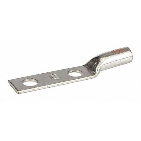 Copper Compression Connector, Long Barrel Copper Lug, LN Series, Two Hole Nema, 1/2" Stud, 1-5/8" Strip Length, 0.62" OD, 0.90" Width, 4.65" Length, 0.13" Thick, Orange