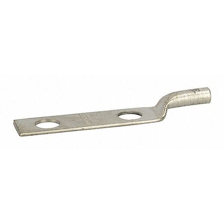 Copper Compression Connector, Long Barrel Copper Lug, LN Series, Two Hole Nema, 1/2" Stud, 1-1/4" Strip Length, 0.34" OD, 0.87" Width, 4.09" Length, 0.12" Thick, Gray