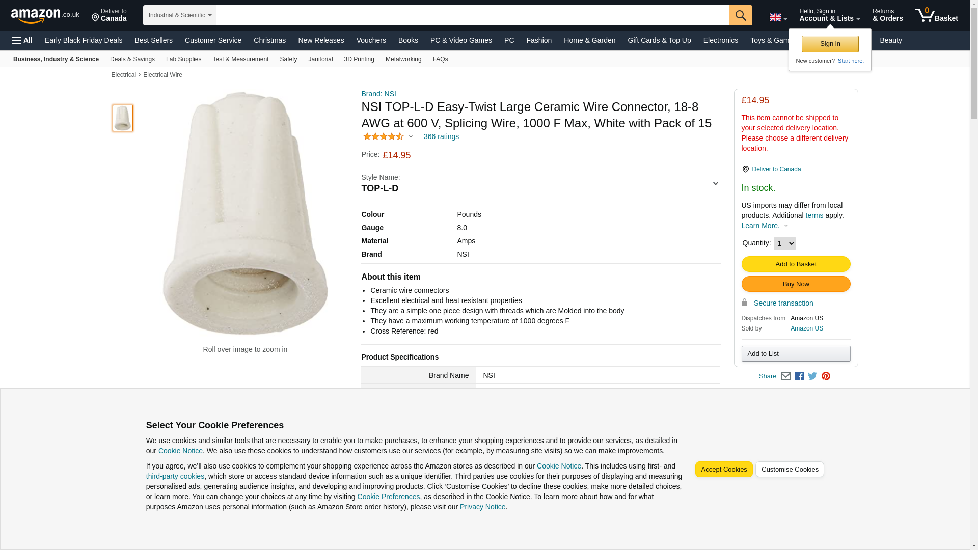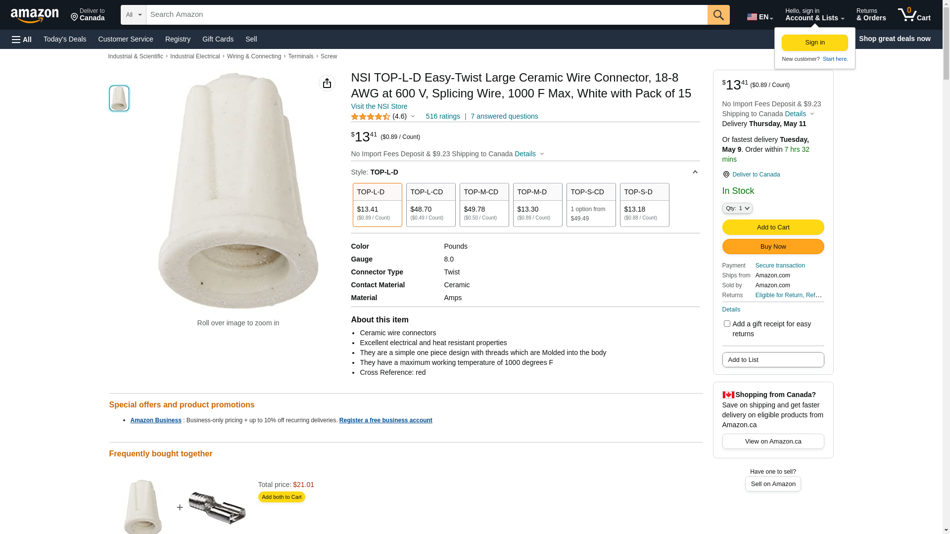 NSI TOP-L-D LARGE CERAMIC WIRE CONNECTOR PK OF 15 - MROSupply.com