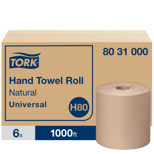 Tork Hand Towel Roll, Natural, Universal, H80, Extra Large, 100% Recycled, 1-Ply, 6 Rolls x 1000 ft, 8031000