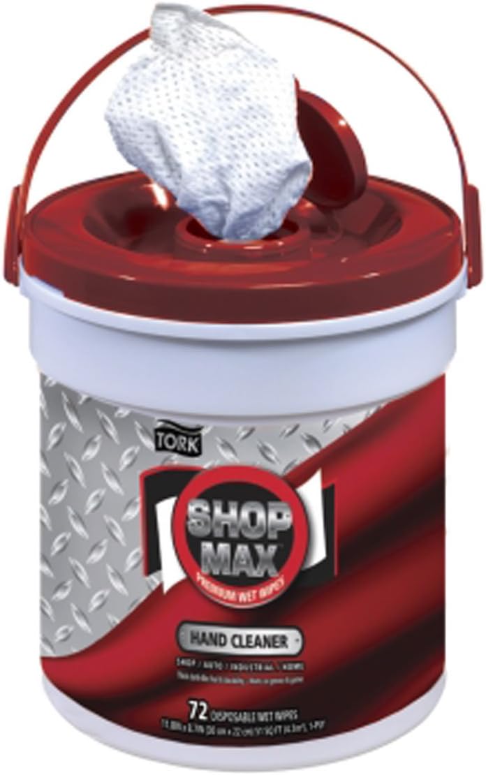 Tork Premium 192592 ShopMax Wet Wipes Hand Cleaner, Bucket, 1-Ply, 11.8" Width x 8.7" Length, White (Case of 4 Buckets, 72 per Bucket, 288 Towels)