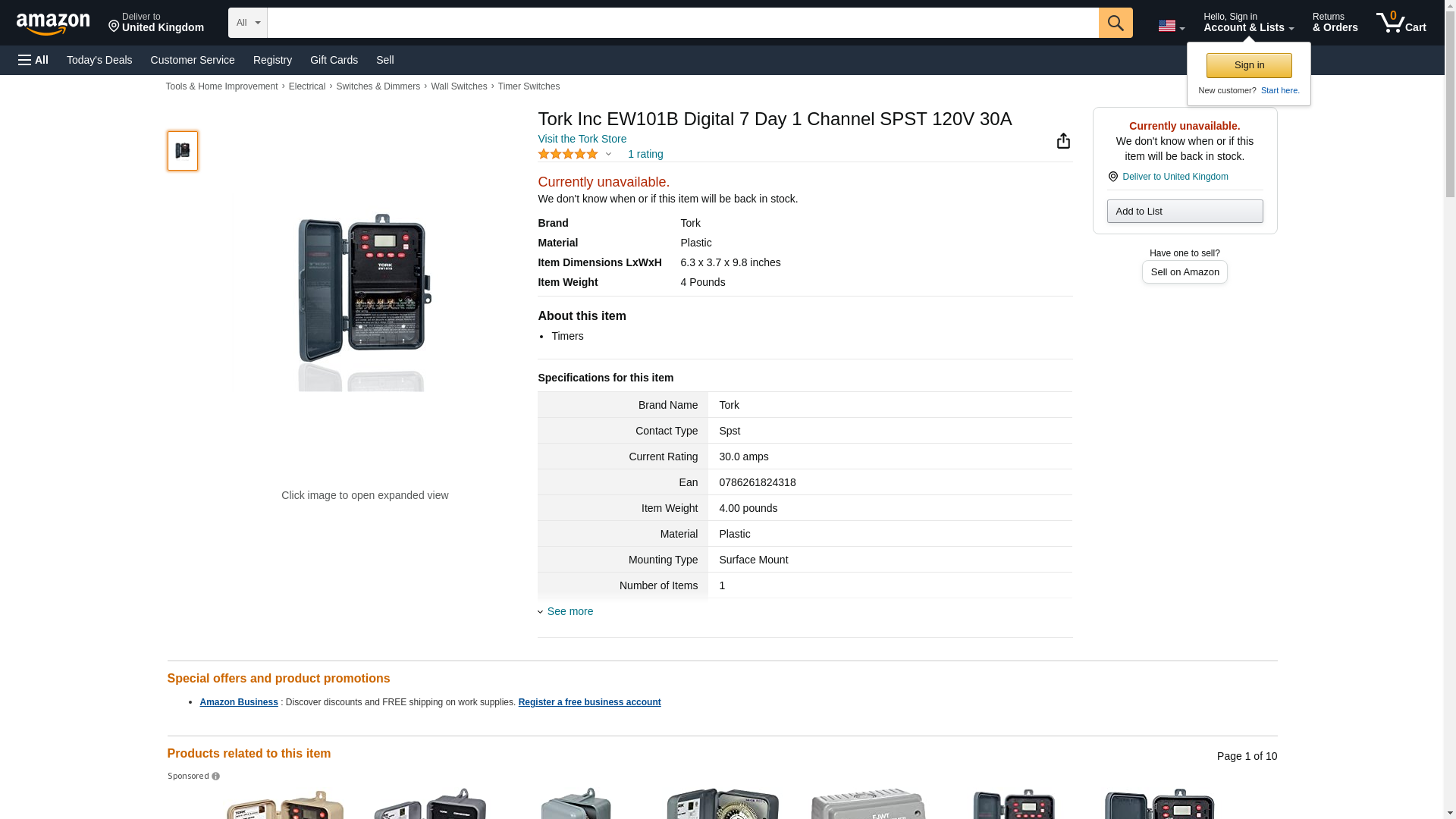 EW101B, Tork Inc, Digital 7 Day 1 Channel SPST 120V 30A