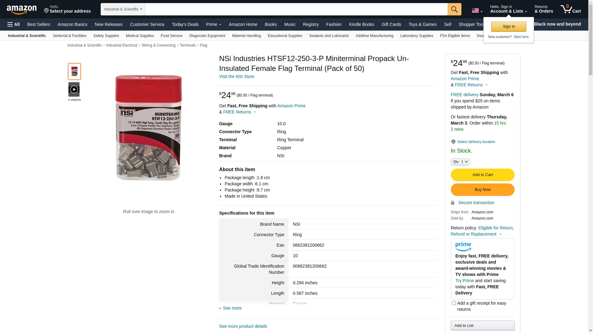 NSi Industries HTSF12-250-3-P Miniterminal Propack Un-Insulated Female Flag Terminal (Pack of 50)