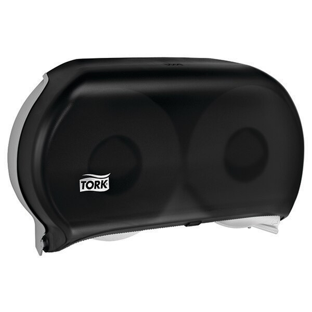 Tork Twin Jumbo Toilet Paper Roll Dispenser Smoke T22, Refill Indicator Window, 56TR