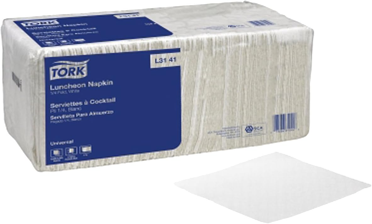 Tork L3141 Universal Luncheon Napkins, 1-Ply, 13x11 1/2, 1/4 Fold, Poly-Pack,white,6000/ctn