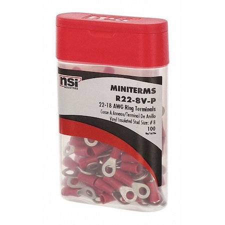 NSi Industries R22-8V-P Miniterminal Propack Vinyl Ring Terminals (Pack of 100)