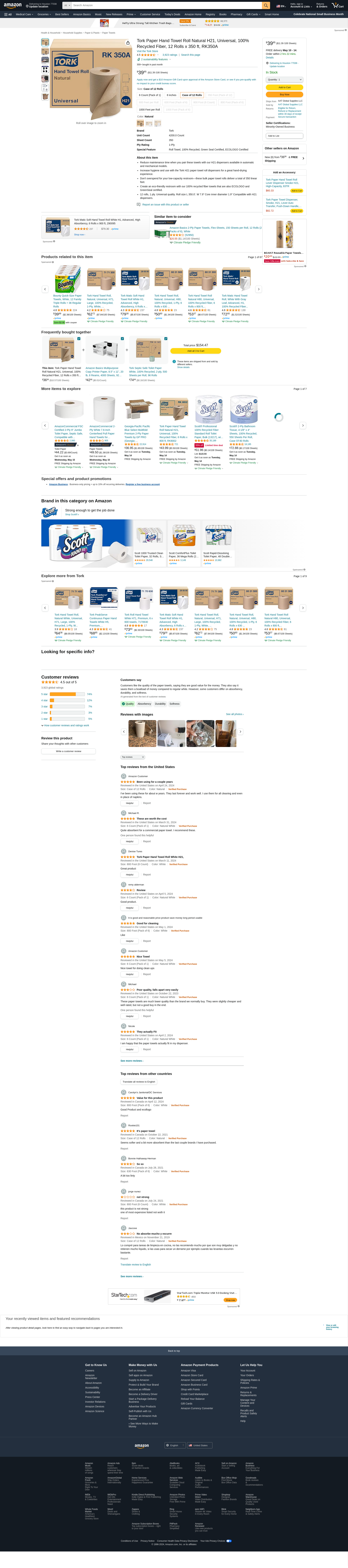 Tork Paper Hand Towel Roll Natural H21, Universal, 100% Recycled Fiber, 12 Rolls x 350 ft, RK350A