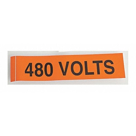 Voltage Marker, Legend"480 Volts", 4-1/2" Length x 1-1/8" Height, Pressure Sensitive Vinyl, Black on Orange