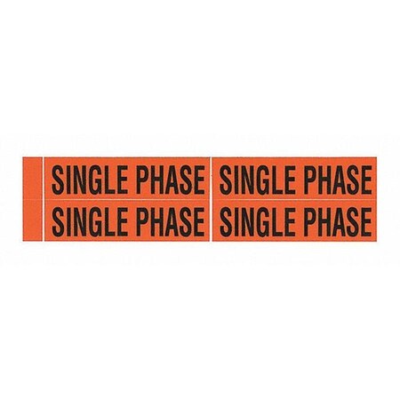 Voltage Marker, Legend"Single Phase", 4-1/2" Length x 1-1/8" Height, Pressure Sensitive Vinyl, Black on Orange