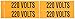 Voltage Marker, Legend 220 Volts, 4-1/2 Length x 1-1/8 Height, Pressure Sensitive Vinyl, Black on Orange