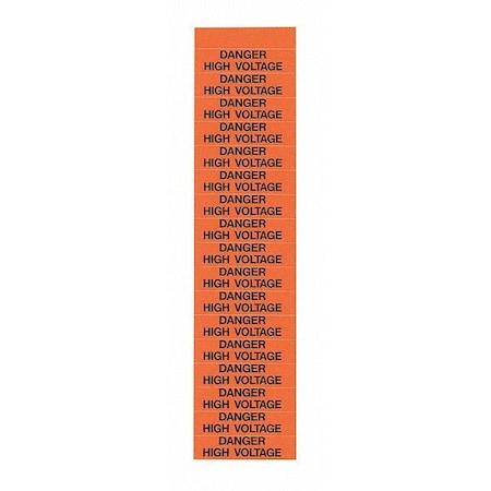 Voltage Marker, Legend"Danger High Voltage", 1/2" Length x 2-1/4" Height, Pressure Sensitive Vinyl, Black on Orange