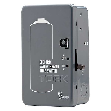 Electromechanical Water Heater Timer, 24 hr, Number of Poles 2, Contact Form DPST-NO, Voltage 208 to 277V AC, Amps 40 A, Contact HP @ 120V 2 hp, Contact HP @ 240V 5 hp, Day Skipper No, Enclosure Type Steel, Finish Gray Enamel, Metal Enclosure, NEMA Rating 1, Min. Time Setting 20 min, Max. Time Setting 22 hr, Max. On/Off Cycles 12, Width 4 11/16 in, Depth 2 15/16 in, Height 7 15/16 in, Number of Trippers Included 2, Operating Temp. -40 Degrees to 165 Degrees F