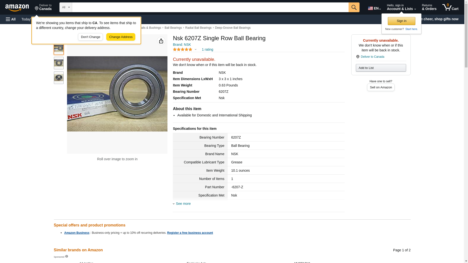 | 6207Z | 1 | Ships From Manufacturer | 1 | 1 @ $0.00 |